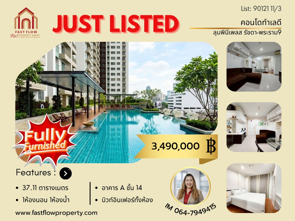 ขายด่วน ลุมพินี เพลส พระราม9-รัชดา ชั้น 14 อาคารA ถ.พระราม9 ห้วยขวาง รถไฟฟ้า MRT สถานีพระราม9 เซ็นทรัลพระราม9 ฟอร์จูนทาวน์ IM