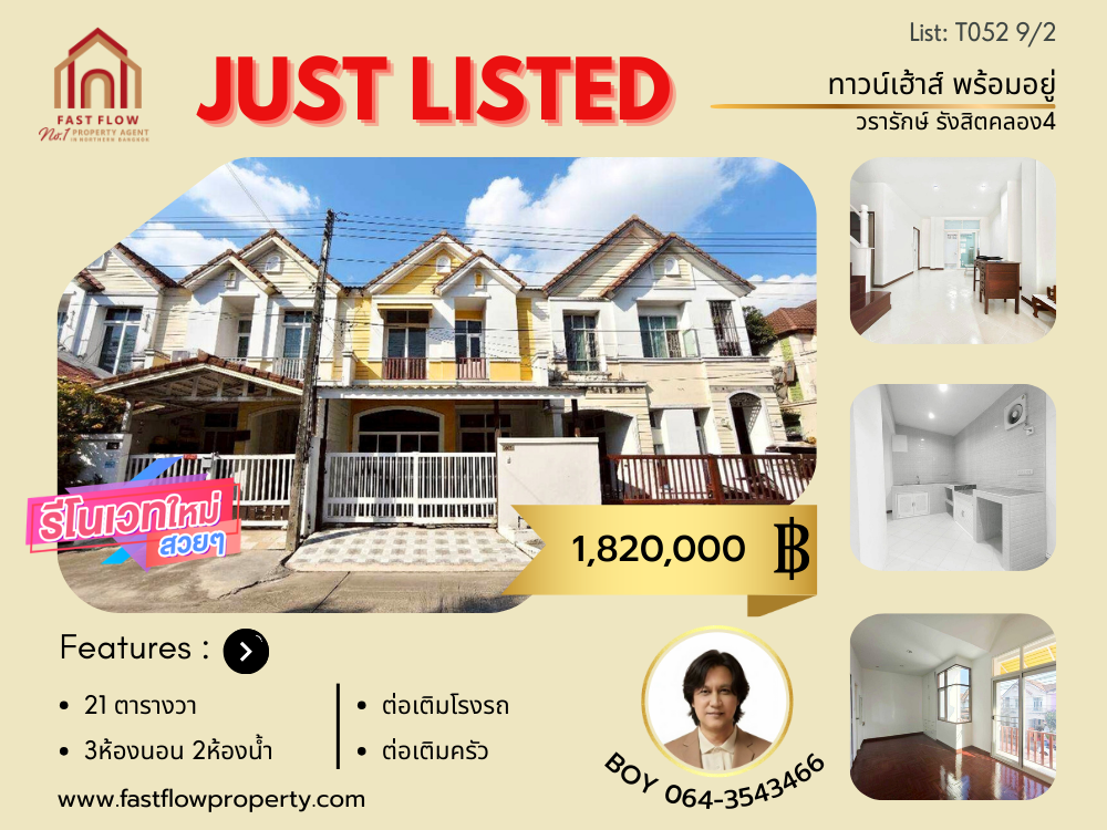 ขายถูก ทาวน์เฮ้าส์ 2 ชั้น หมู่บ้านวรารักษ์ รังสิตคลอง 4 ติดสวน ทาวน์โฮม รีโนเวทใหม่ ถนนพระองค์เจ้าสาย ลำลูกกาคลอง 4 ถนนไสวประชาราษฎร์ BOY