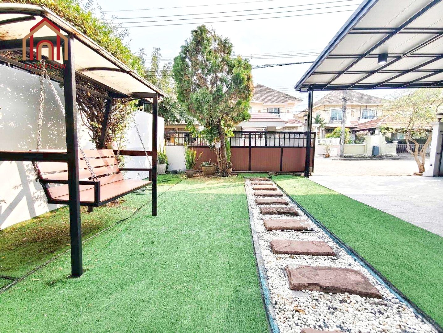 – หน้าบ้านจัดเป็นสวนพักผ่อน