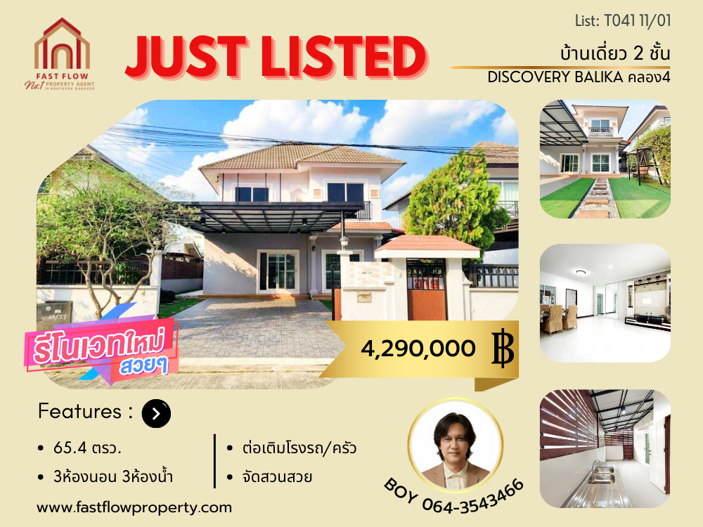 ขายบ้านเดี่ยว ลำลูกกาคลอง4 หมู่บ้านดิสคอฟเวอรี่ บาหลีก้า รังสิตคลอง4 รีโนเวทใหม่ Discovery Balika ต่อเติมโรงรถ ต่อเติมครัว ต่อเติมกันสาดด้านข้าง ถนนไสวประชาราษฎร์ ถนนพระองค์เจ้าสาย BOY