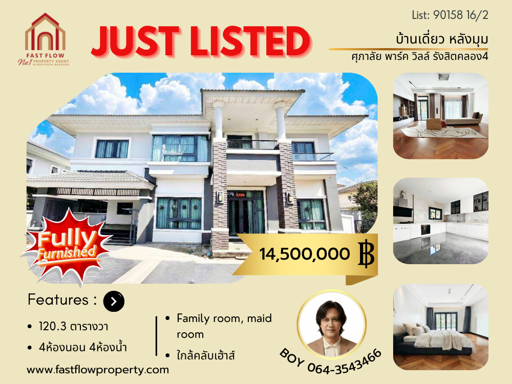 ขายบ้านเดี่ยว 2 ชั้น ศุภาลัย พาร์ควิลล์ รังสิต คลอง 4 หลังมุม ติดถนนเมน ใกล้คลับเฮ้าส์ บิวท์อินทั้งหลัง Supalai Park Ville Klong 4 โครงการติดถนนรังสิต-นครนายก BOY