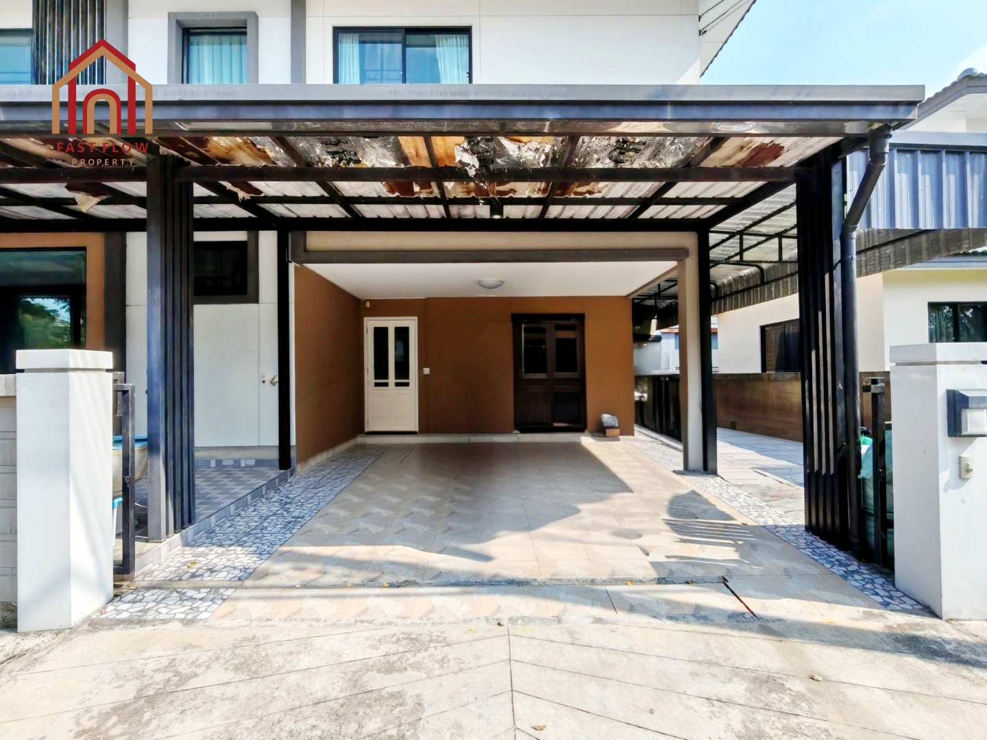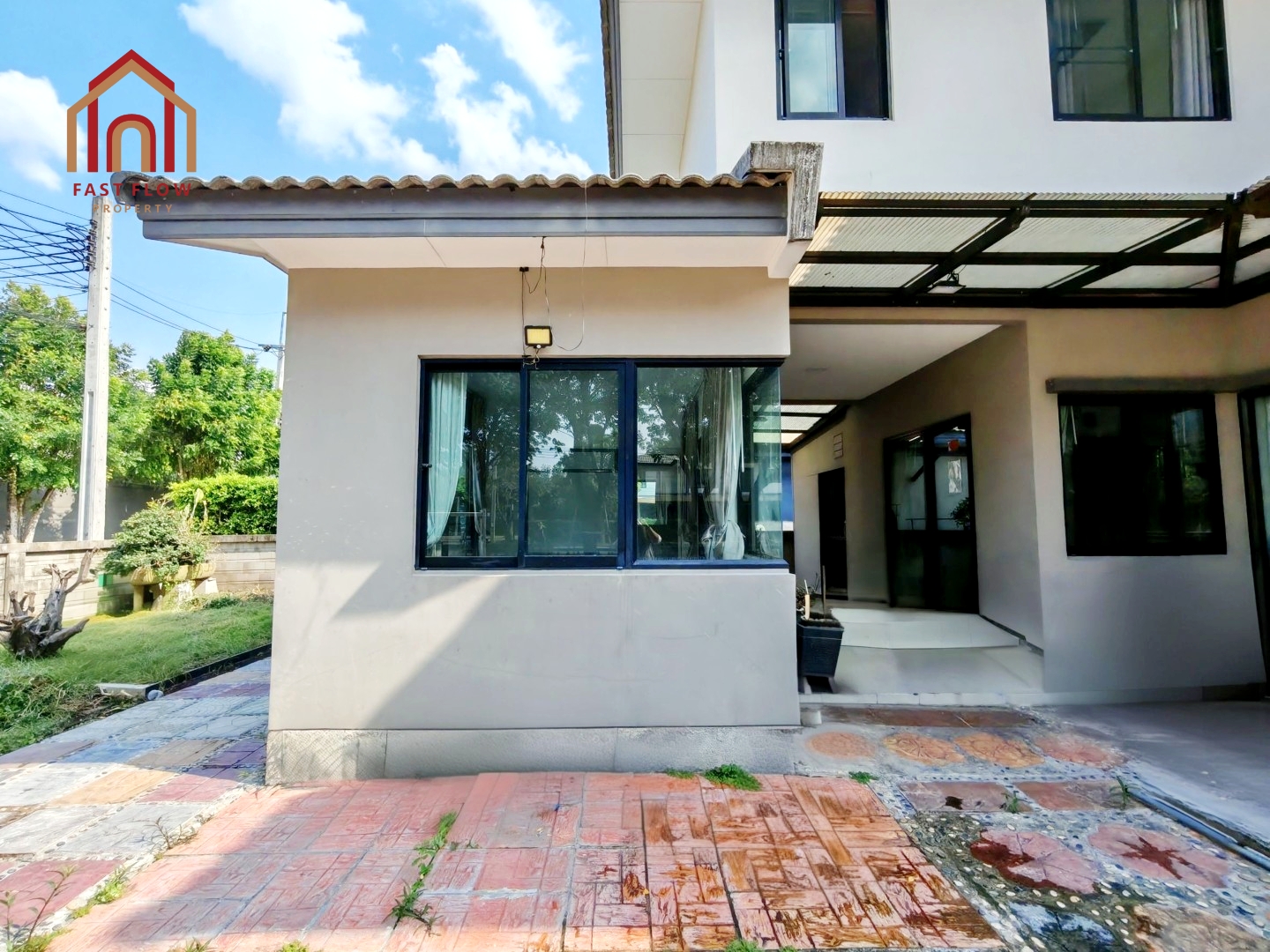 – ต่อเติมโรงรถ พร้อมปูกระเบื้อง จอดรถในร่มได้ 2 คัน