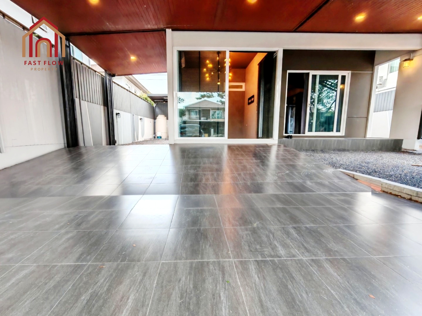 – ต่อเติมโรงรถ พร้อมปูกระเบื้อง จอดรถในร่มได้ 2 คัน