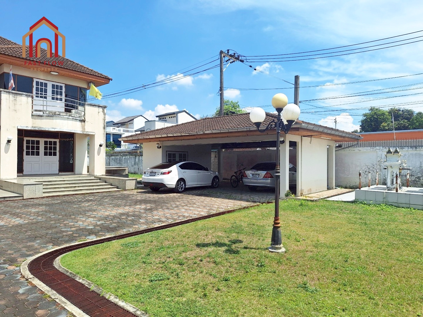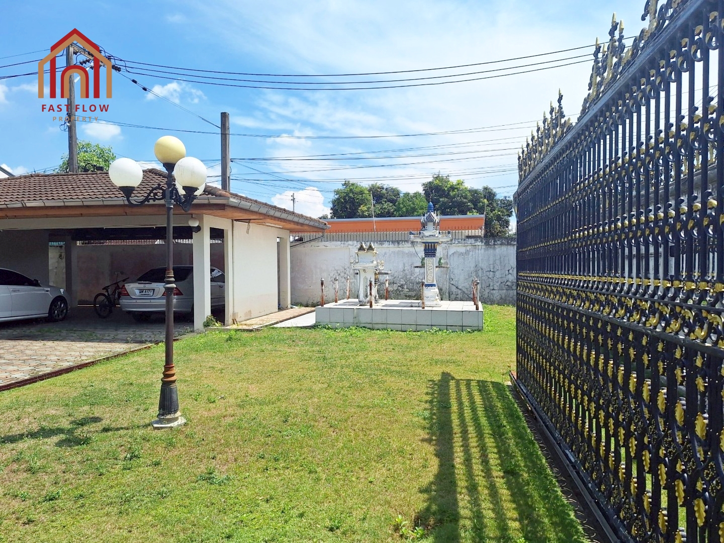– หน้าบ้านเป็นฝั่งที่ไม่มีเสาไฟฟ้า ดูสะอาด และปลอดภัย