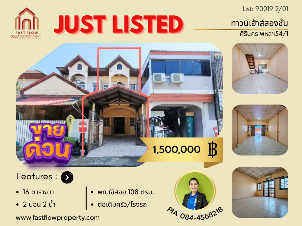 ขาย ทาวน์เฮ้าส์ หมู่บ้านศิรินคร ถนนพหลโยธิน 54/1 ทาวน์โฮม ย่านสะพานใหม่ สายไหม ลำลูกกา หทัยราษฎร์ จันทรุเบกษา ต่อเติมโรงจอดรถ ต่อเติมครัว PIA
